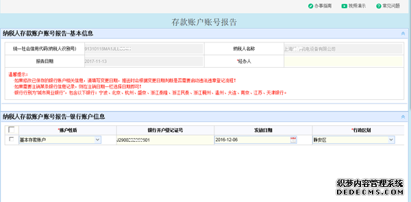 隨著國家金稅三期上線后,稅務(wù)的政策有了很大的改動,原來由納稅人在稅務(wù)窗口就能全部完成,現(xiàn)在變成了稅務(wù)窗口+納稅人自行網(wǎng)上辦稅大廳辦理相關(guān)的發(fā)票核定、打印三方協(xié)議、銀行賬戶存款報告、一般納稅人申請、代辦增值稅專用發(fā)票等全部由企業(yè)在網(wǎng)廳辦理,這樣就要求每個企業(yè)的財務(wù)都必須知道整個的流程是怎么辦理的。如果不懂就需要進行培訓(xùn),然后才能辦理網(wǎng)上辦稅服務(wù),下面小編就網(wǎng)上辦稅和大家一起來分享一下整個的流程。     一、購買法人一證通   在進行稅務(wù)核定稅種之前,首先第一步就是到數(shù)字證書管理中心購買法人一證通,購買法人一證通需要材料如下:營業(yè)執(zhí)照副本原件及復(fù)印件、法人身份證原件及復(fù)印件、經(jīng)辦人身份證原件及復(fù)印件、公章。這些材料準(zhǔn)備好后就可以直接去購買一證通。   二、稅務(wù)窗口辦理法人信息采集   納稅人去窗口之前需要準(zhǔn)備材料: 1、實際經(jīng)營地址的房產(chǎn)證復(fù)印件、租賃協(xié)議、租房發(fā)票(自有房產(chǎn)無需租房發(fā)票) 2、所有投資人身份證復(fù)印件 3、“多證合一”登記信息確認表(網(wǎng)廳填寫打印出來) 4、公司章程 5、法人一證通密碼紙復(fù)印件 6、稅務(wù)需要的其他表格填寫好蓋章   上面材料準(zhǔn)備好后到所管轄的稅務(wù)所進行法人信息材料,然后法人再拍照,進行相關(guān)的稅務(wù)信息資料提供,完成后稅務(wù)的工作基本上已經(jīng)完畢。   三、網(wǎng)廳登錄   先在電腦上插入法人一證通,打開上海稅務(wù)網(wǎng)站:https://www.tax.sh.gov.cn/xbwt/ 然后點擊“   用戶登錄”-CA登錄—如果CA密碼-登錄 如圖一   如圖二    1、發(fā)票稅種核定 點擊發(fā)票辦理-發(fā)票票種核定-進去之后填寫納稅人經(jīng)辦人-辦理申請票種核定明細下面有一個增行,點擊進去后選擇您所要核定的票種,但是新辦企業(yè)先要添加購買人信息,添加完成后才能提交發(fā)票票種核定。   如圖三:    2、一般納稅人申請 先找到稅務(wù)認定點擊進去有一個“增值稅一般納稅人資格登記”點擊進去,在這里要注意兩個選勾,一個是會計核算健全一定要選擇“是”。一個是一般納稅人資格生效之日:“當(dāng)月1日”和“次月1人”,如果選擇當(dāng)月1日那么一般納稅人當(dāng)月就生效,申請通過后就可以去稅務(wù)局購買增值稅專用發(fā)票了;如果選擇的是次月生效那么一般納稅人資格隔月才能生效,要下個月才能去購買增值稅專用發(fā)票以及發(fā)票認證。   如圖四:    3、存款賬戶賬號報告    點擊稅務(wù)登記-存款賬戶賬號報告,填寫銀行開戶信息,請務(wù)必確保銀行信息正確,否則到時候三方協(xié)議簽訂不成功。   如圖五:   如圖六:   4、三方協(xié)議打印   點擊稅務(wù)登記-稅庫銀三方協(xié)議簽訂,然后再點擊如圖小圓圈 如圖八: 然后點擊保存,三方協(xié)議就生成了,生存之后10分鐘后打印出來,注意打印兩份一定要彩打。   如圖七:    總結(jié),新辦企業(yè)網(wǎng)廳基本上就上面四個流程,如果您都掌握了這些稅務(wù)流程,您就可以輕松網(wǎng)上辦稅,不用去求人自己就可以輕松搞定,而且您還可以當(dāng)別人的老師,總之要想知道的更多只有自己學(xué)習(xí)更多才能了解更多。